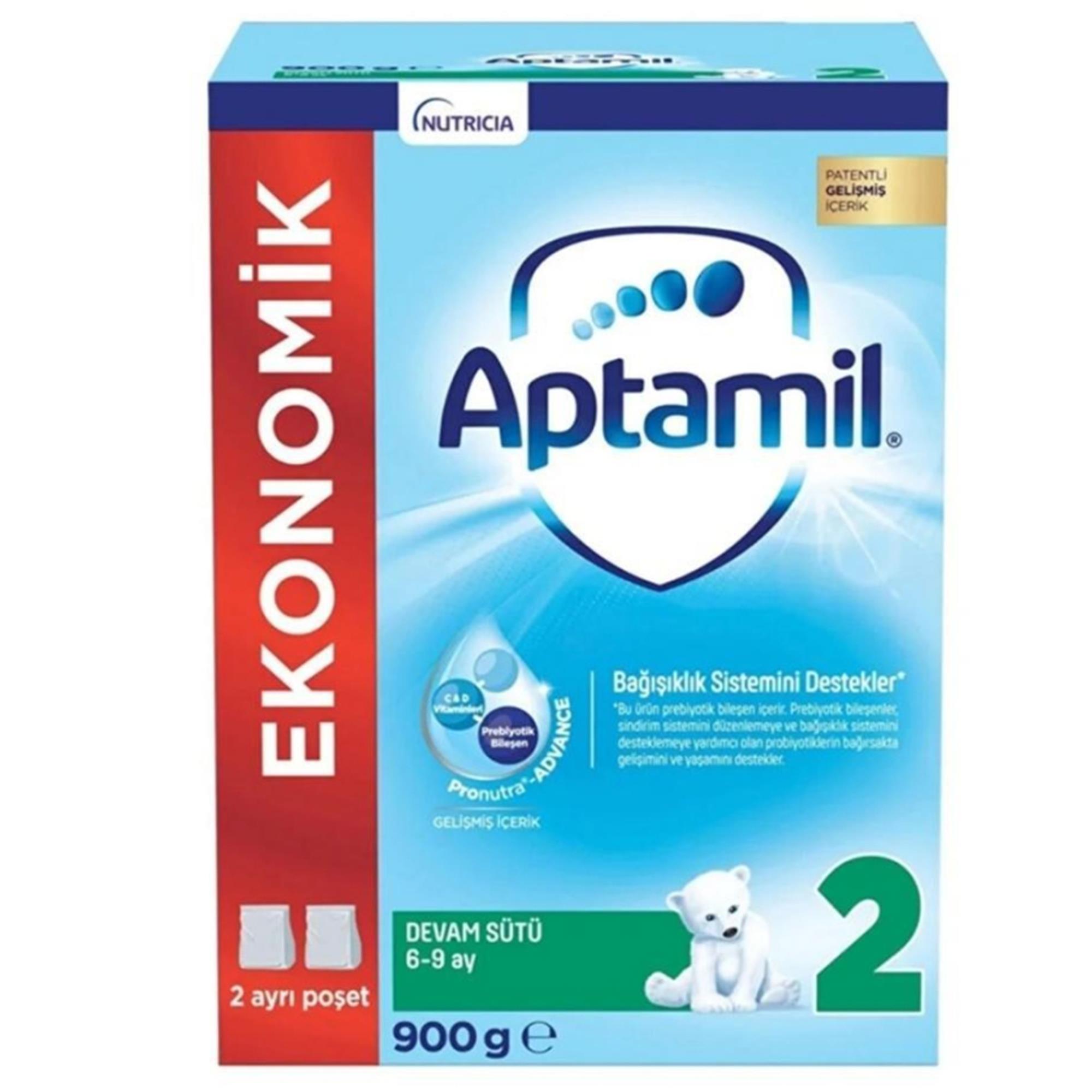 Aptamil 2 Devam Sütü 900 gr, 6-9 ay arası bebekler için özel olarak geliştirilmiş, bağışıklığı destekleyen D vitamini ve prebiyotik içeriğiyle öne çıkan, Avrupa patentli çocuk devam sütüdür. Anne sütüyle beslenmenin mümkün olmadığı ya da yetersiz kaldığı durumlarda, doktor önerisiyle kullanılabilir. Nutricia'nın 50 yıllık anne sütü araştırmaları doğrultusunda geliştirilen Aptamil 2, bebeklerin sağlıklı gelişimini bilimsel temellerle destekler.