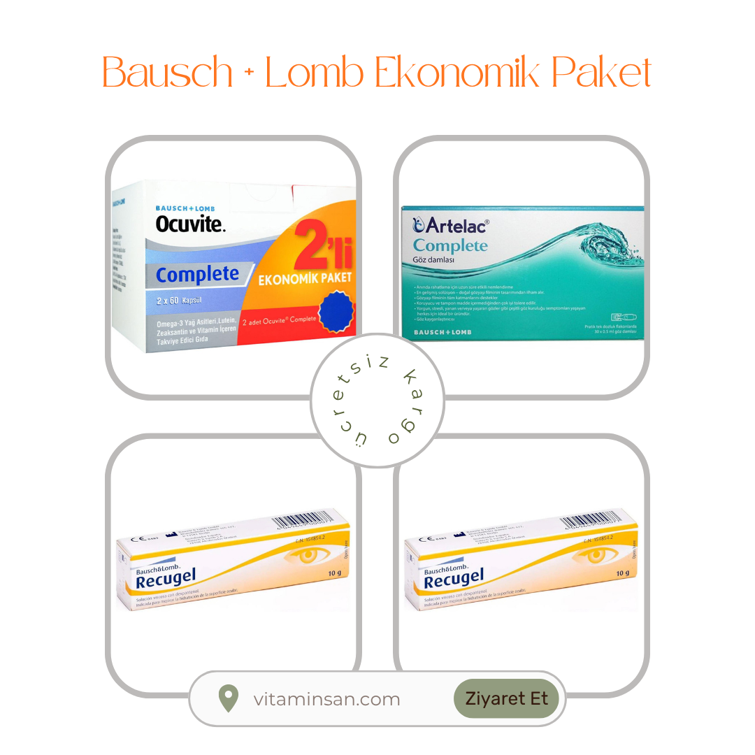 Bausch + Lomb Göz Bakım Paketi 2 Adet Recugel Göz Jeli 10 gr 1 Adet Artelac Complete Göz Damlası 30 Flakon 0,5 ml 1 Adet Ocuvite Complete 60 Kapsül - İkili Fırsat Paketi